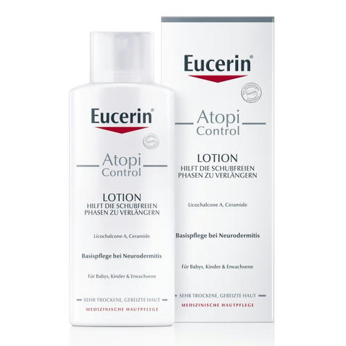 - У Вас Атопический Дерматит и Вы ищете косметическое средство по уходу за кожей во время обострений: Лосьон для атопической кожи Eucerin AtopiControl может использоваться как дополнительное средство для ухода к Интенсивному успокаивающему крему для атопической кожи в период обострения Eucerin AtopiControl или в дополнение к лекарственному средству.