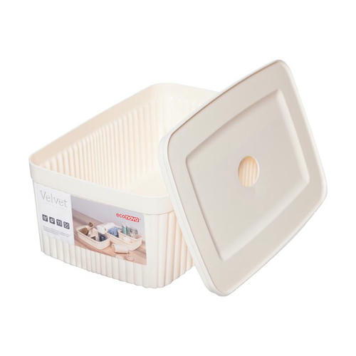 Лоток с крышкой “Velvet” подходит для хранения косметических средств, аксессуаров и других нужных мелочей. Нейтральная расцветка, лаконичный дизайн. Крышка защищает содержимое от пыли. Размер: 23х15х9 см. Объём: 2,5 л. Состав: полипропилен. Товар представлен в ассортименте