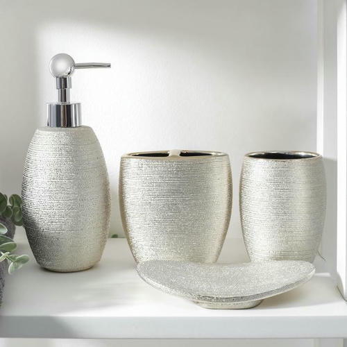 Набор аксессуаров организует пространство и станет стильным украшением Вашей ванной комнаты. За счет сдержанного дизайна данный керамический набор в ванную подойдет к любому дизайну ванной комнаты. Набор состоит из 4 предметов: 2 стакана, мыльница, дозатор.