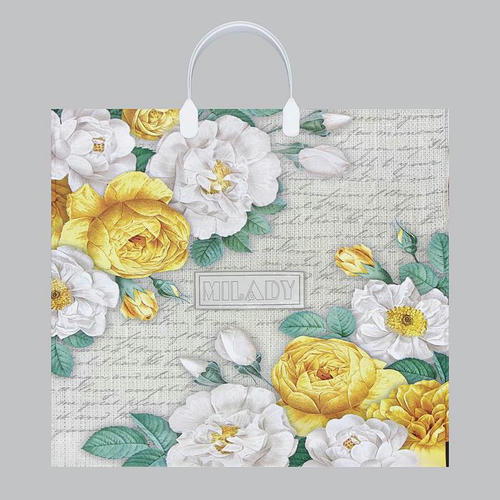 Пакет полиэтиленовый с пластиковой ручкой, благодаря ручкам пакет служит дольше. Прочный и надежный с оригинальным рисунком.