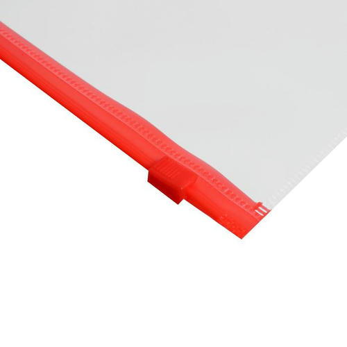 Изготовлена из прочного прозрачного пластика толщиной 150 мкм с гладкой фактурой. Формат А5 (245 х 190 мм). Герметичная застежка-зиплок защищает документы от механических повреждений, а также пыли и влаги. Цвет молнии – красный