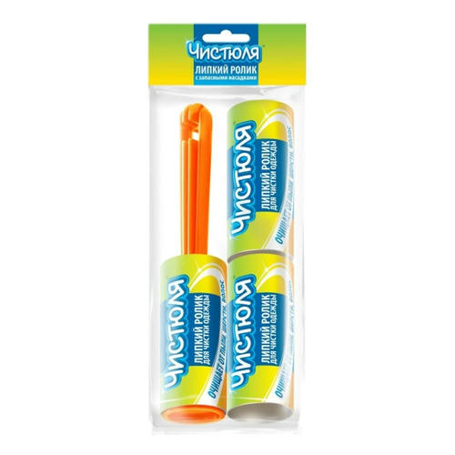 Ролик для чистки одежды, 2 сменных блока (20 листов), Рыжий Кот 214486 – липкий ролик для удаления пыли, шерсти, ворсинок с одежды и мебели из любых видов тканей. С удобной диагональной намоткой. Улучшенный состав клеевого слоя очищает поверхность, не оставляя следов. Чистящая поверхность состоит из 12 липких слоев, которые удаляются по мере использования. Легкая замена использованного блока ролика на новый.
