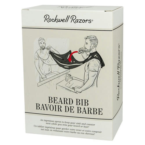 Rockwell Beard Bib – фартук для стрижки бороды с присосками крепится к зеркалу во время стрижки бороды. Это сохраняет чистоту в ванной комнате и защищает от засорившегося слива раковины.